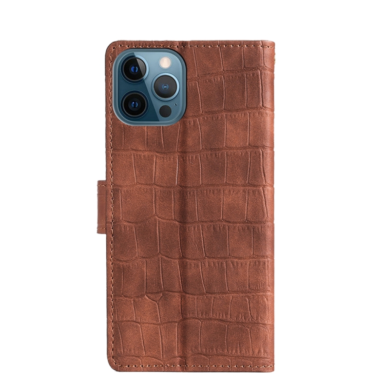 Funda para iPhone 13 Pro Cuero de PU Textura de Cocodrilo Cierre Magnético Tapa Horizontal Soporte Ranuras para Tarjetas y Billetera (Marrón)