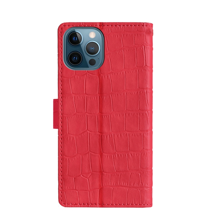 Funda para iPhone 13 Pro Cuero de PU Textura Cocodrilo Cierre Magnético Tapa Horizontal Soporte Ranuras Tarjetas Billetera (Rojo)