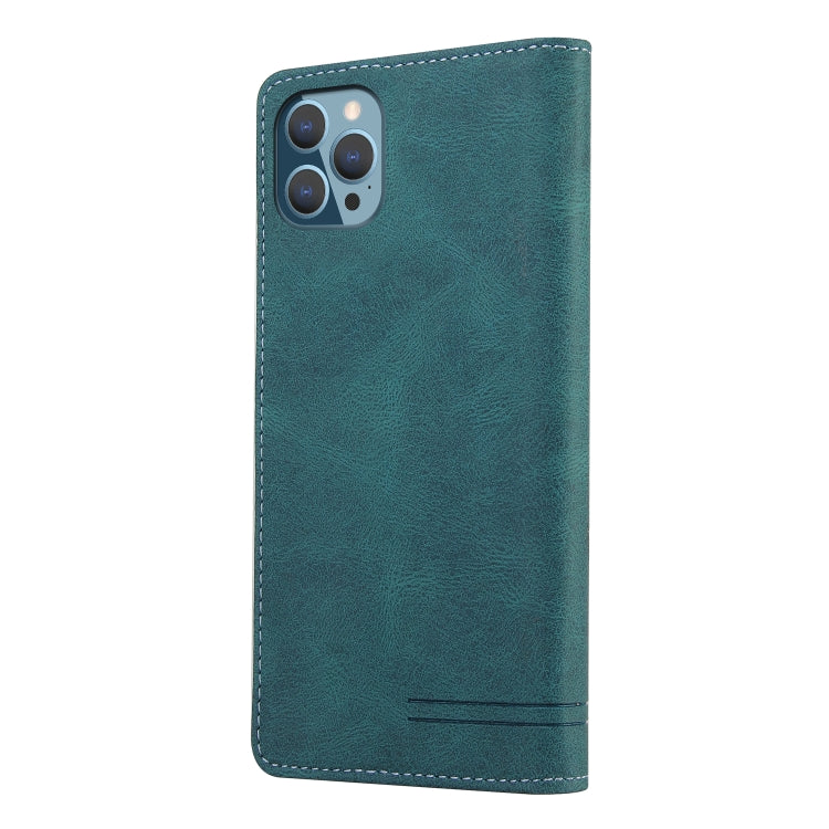 Funda de Cuero para iPhone 13 Pro Skin Feel con Tapa Horizontal, Cepillo Antirrobo, Soporte, Ranuras para Tarjetas y Billetera (Azul)