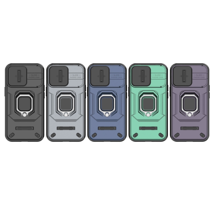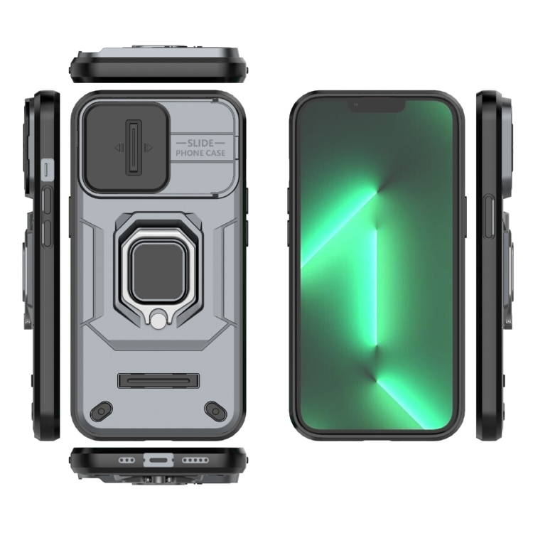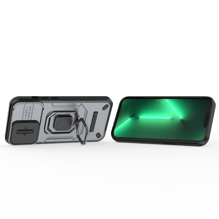 Estuche para Teléfono iPhone 13 Pro Sliding Camshield TPU + PC a Prueba de Golpes con Soporte (Gris)