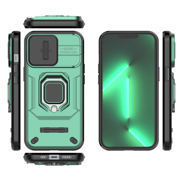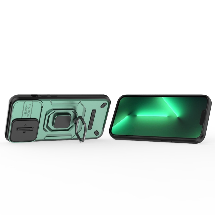 Estuche para Teléfono iPhone 13 Pro Sliding Camshield TPU + PC Prueba de Golpes con Soporte (Verde)