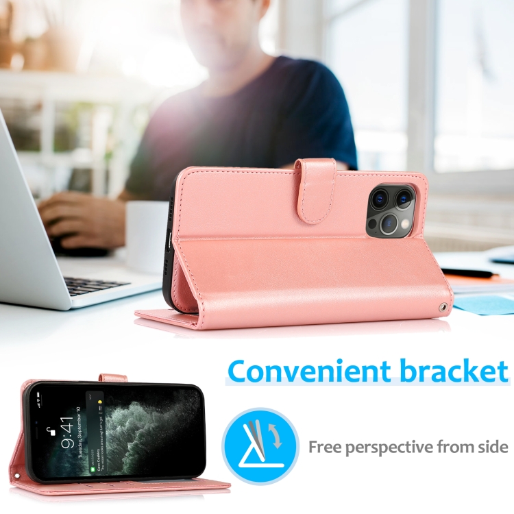 Funda para iPhone 13 Pro Cuero Textura de Becerro 2 en 1 Cubierta Trasera Magnética Desmontable con Tapa Horizontal Soporte Ranuras Tarjetas Billetera Marco Fotos (Oro Rosa)