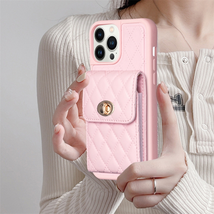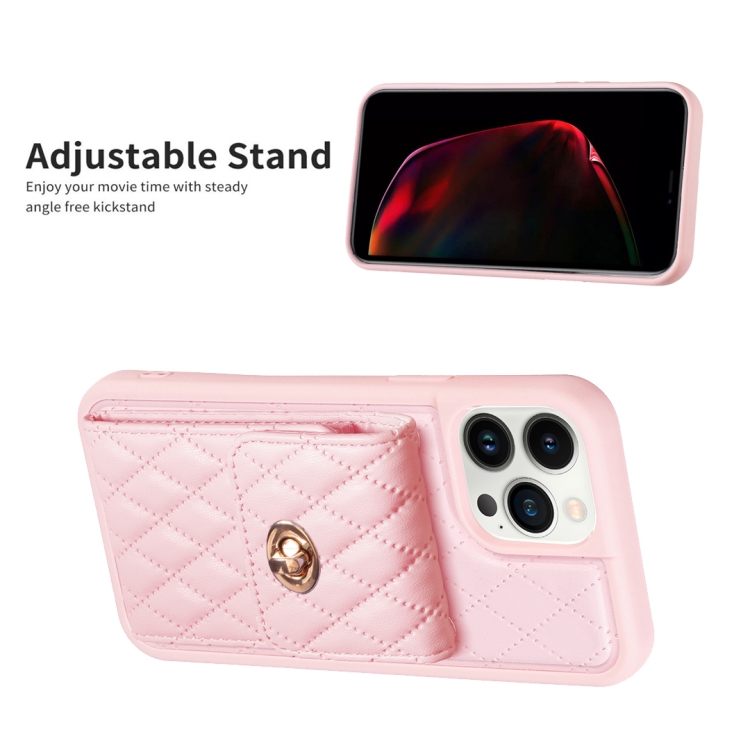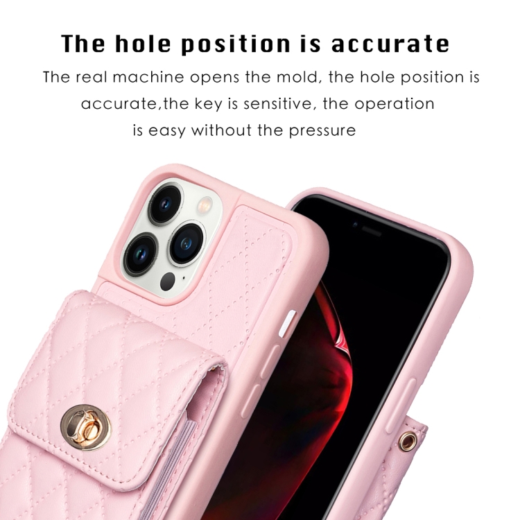 Funda para iPhone 13 Pro Rombico Cartera Cuero Vertical Hebilla de Metal (Rosa)