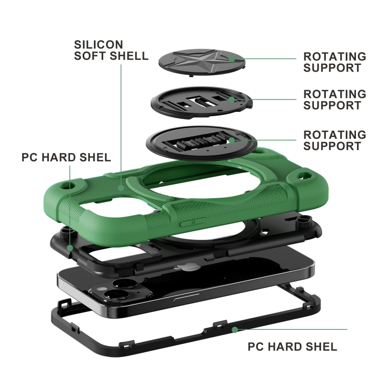 Funda para Teléfono iPhone 13 Shield PC Hybrid Silicona (Verde Oscuro + Negro)