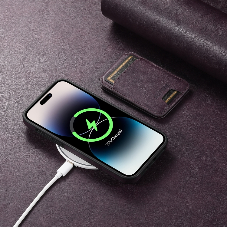 Funda para Teléfono Suteni M2 para iPhone 13 con Magsafe y Bolsa para Tarjeta Horizontal (Púrpura)