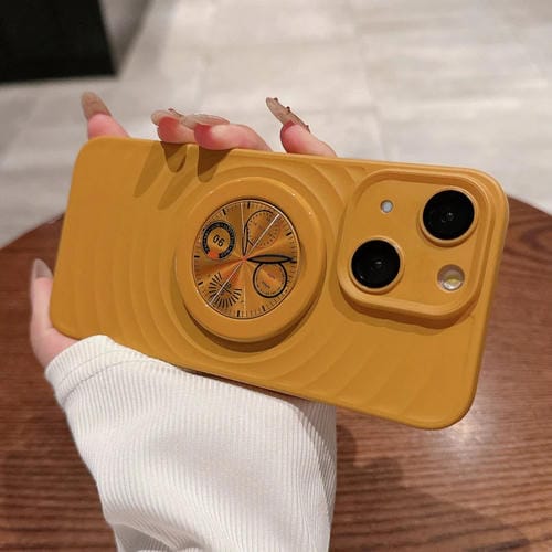 Funda para Teléfono iPhone 13 Wave Texture PC a Prueba de Golpes con Soporte (Caqui)