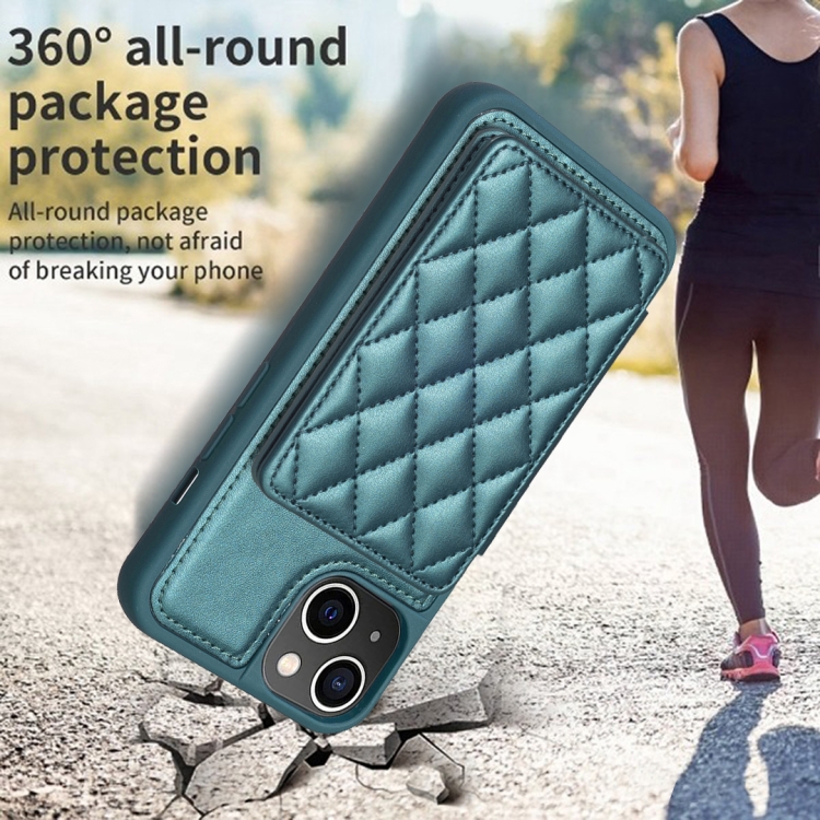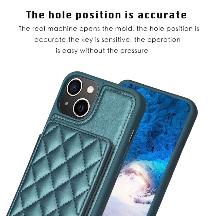 Funda para iPhone 14/13 Bf25 Square Plaid Card Bag Holder con soporte para tarjetas (Verde)
