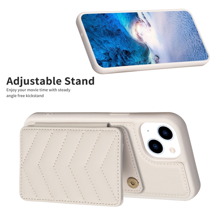 Funda para iPhone 14/13 Bf26 Wave Pattern Card Bag Holder Phone Case (Beige)
