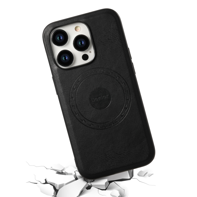 Funda para Teléfono Denior iPhone 14/13 Magsafe Cuero Textura Piel de Vaca (Negro)