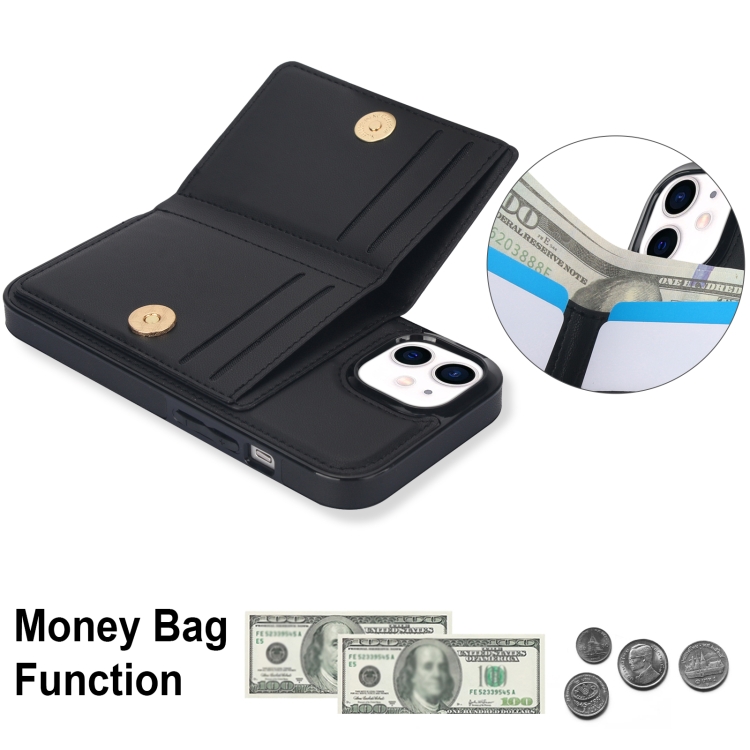 Estuche para Teléfono iPhone 14/13 con Soporte para Anillo y Tarjeta Antirrobo Rfid (Negro)