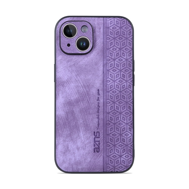 Estuche para Teléfono Azns iPhone 14 Sensación de Piel en Relieve 3D (Púrpura)