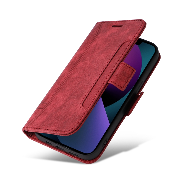 Estuche de Cuero Betopnice para iPhone 14 con Hebilla de Doble Cara (Rojo)