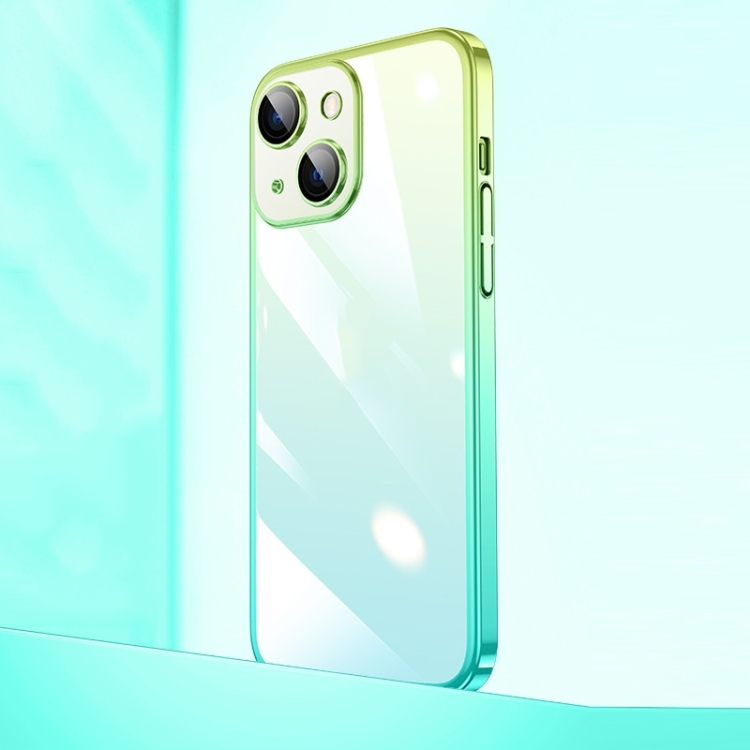 Caja de Teléfono para iPhone 14 PC Galvanizada Transparente Degradado (Verde Cian-Azul)