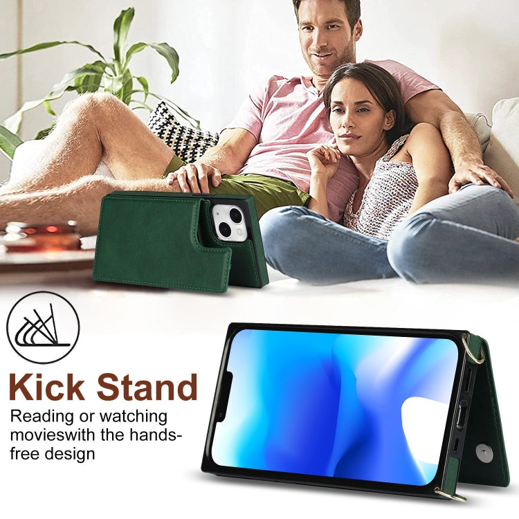 Funda para iPhone 14 Cross-Body Square Dual-Hebilla Tarjeta Flip Wallet Phone Case (Verde)