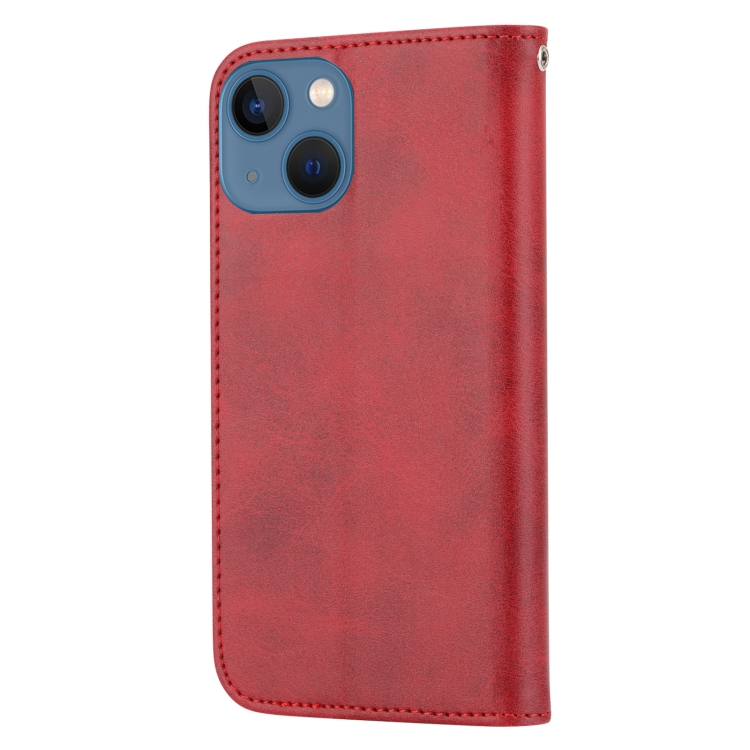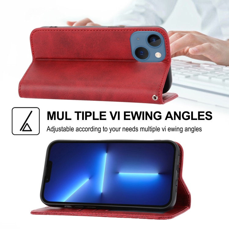 Funda para iPhone 14 Cubic Grid Becerro Textura Cierre Magnético Cuero (Rojo)