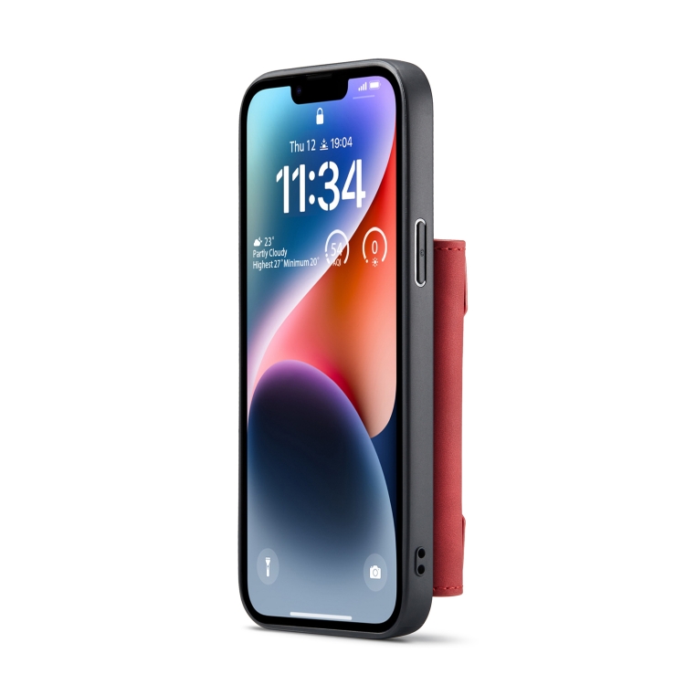 Estuche de Cuero Dg.Ming M2 Series para iPhone 14 con Bolsa de Tarjeta de 3 Pliegues (Rojo)