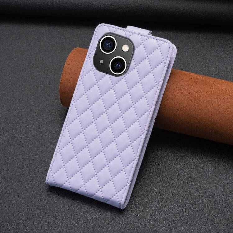 Funda para Teléfono iPhone 14 Diamond Lattice Vertical Flip de Cuero (Púrpura)