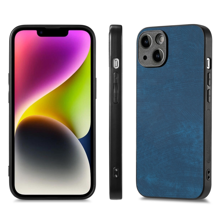 Funda para iPhone 14 Enkay Retro Leather Skin PC con Película de Vidrio Aluminio y Silicio (Azul)