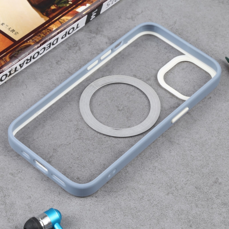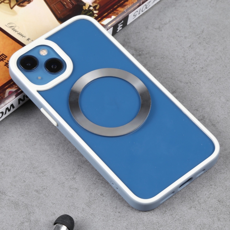 Funda para teléfono iPhone 14 Escudo de Dos Colores Magsafe TPU + PC (Azul)