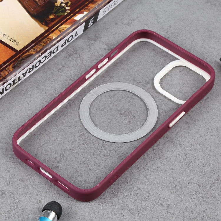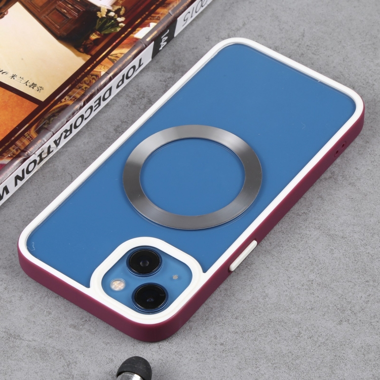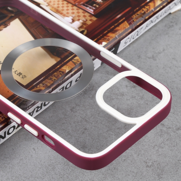 Funda para Teléfono iPhone 14 Escudo Dos Colores Magsafe TPU + PC (Rojo Vino)