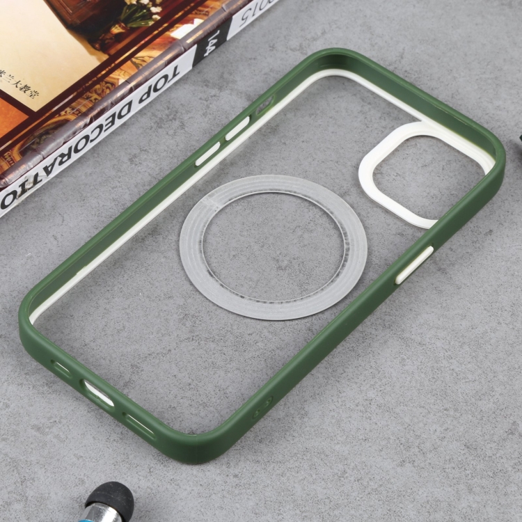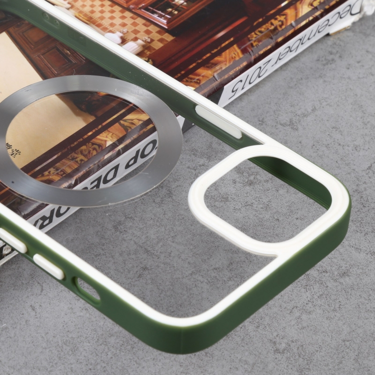 Funda para Teléfono iPhone 14 Escudo de Dos Colores Magsafe TPU + PC (Verde Oscuro)