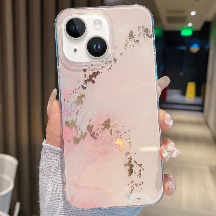 Estuche de teléfono para iPhone 14 Mármol Esmaltado de Color (Oro Blanco)