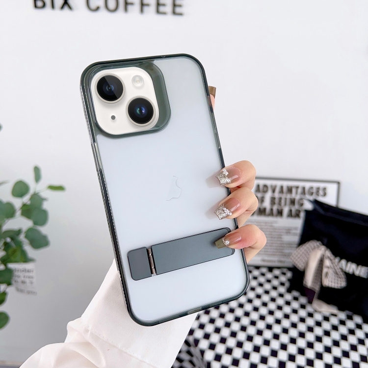 Estuche para Teléfono iPhone 14 con Soporte Alto Transparente (Negro)