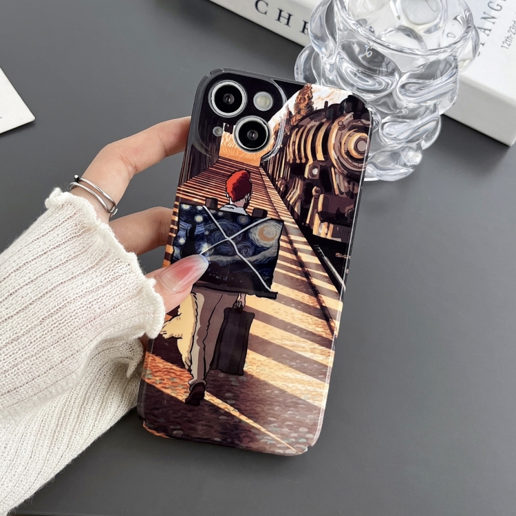 Estuche para teléfono iPhone 14 PC brillante con orificio preciso (Estación de Tren)