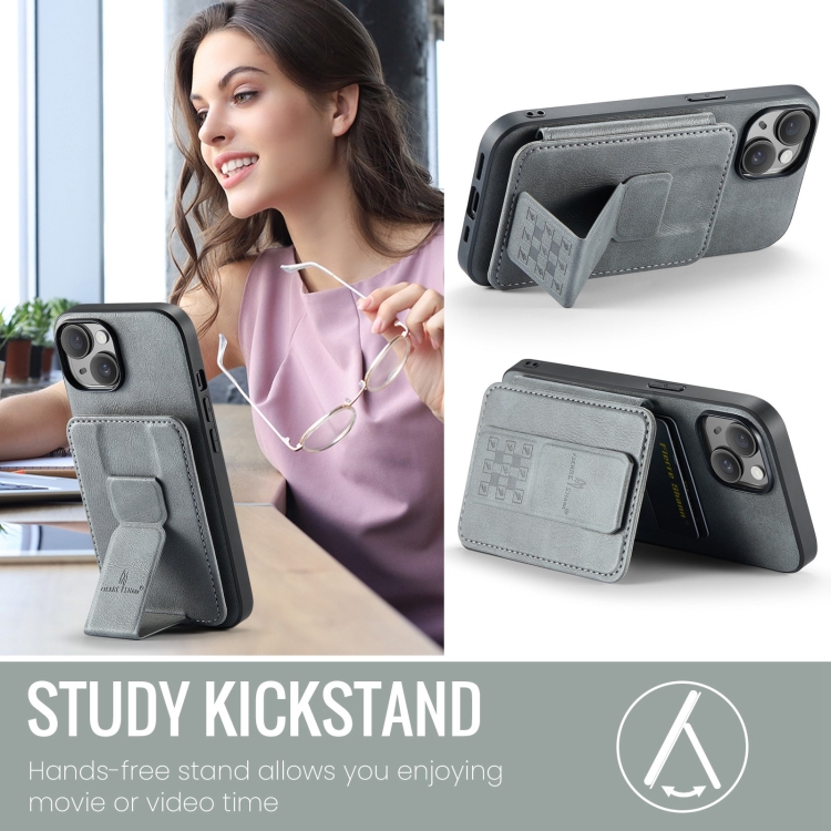 Funda para Teléfono Fierre Shann iPhone 14 con Tarjetero de Cuero de Vaca (Gris)