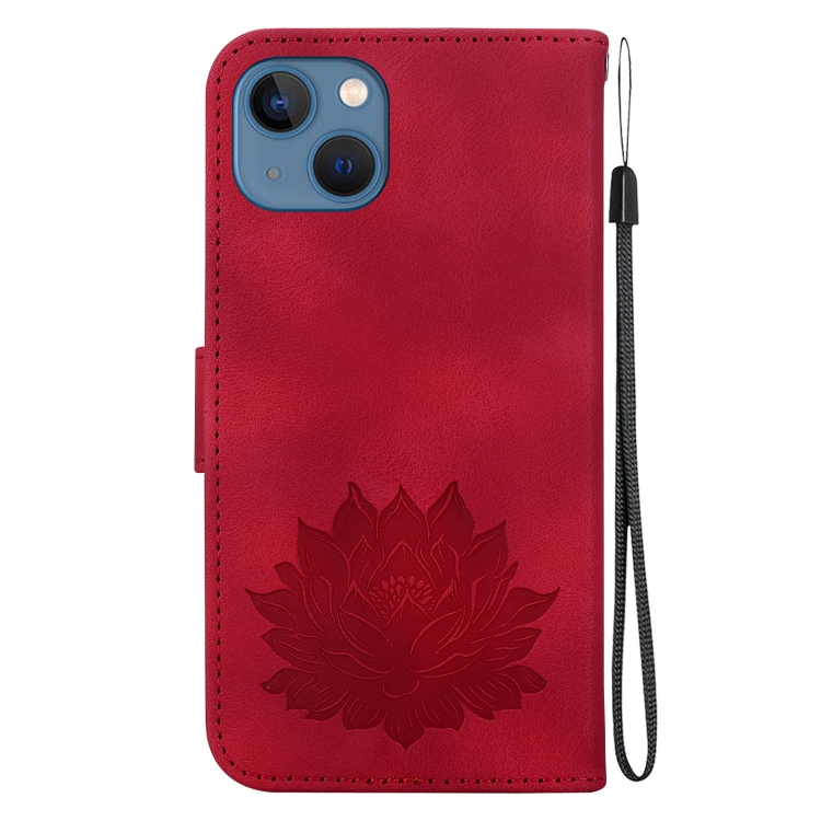 Funda de Cuero para iPhone 14 con Relieve de Loto (Rojo)