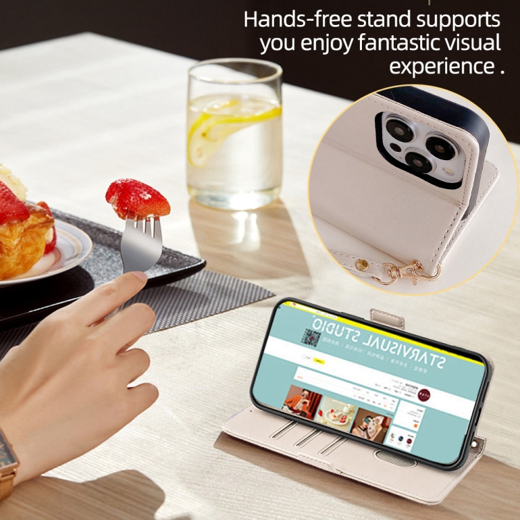 Funda de Cuero para Teléfono iPhone 14 con Cadena Cruzada (Blanco)