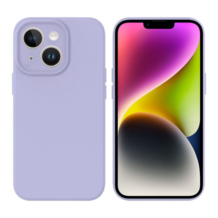 Funda de Teléfono iPhone 14 Silicona Líquida Orificio Precisión Magsafe (Púrpura Claro)