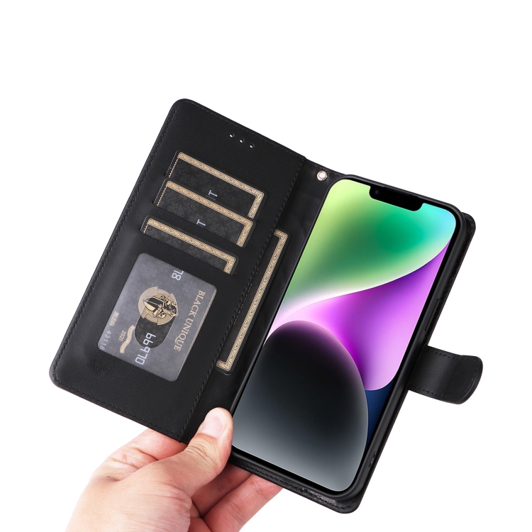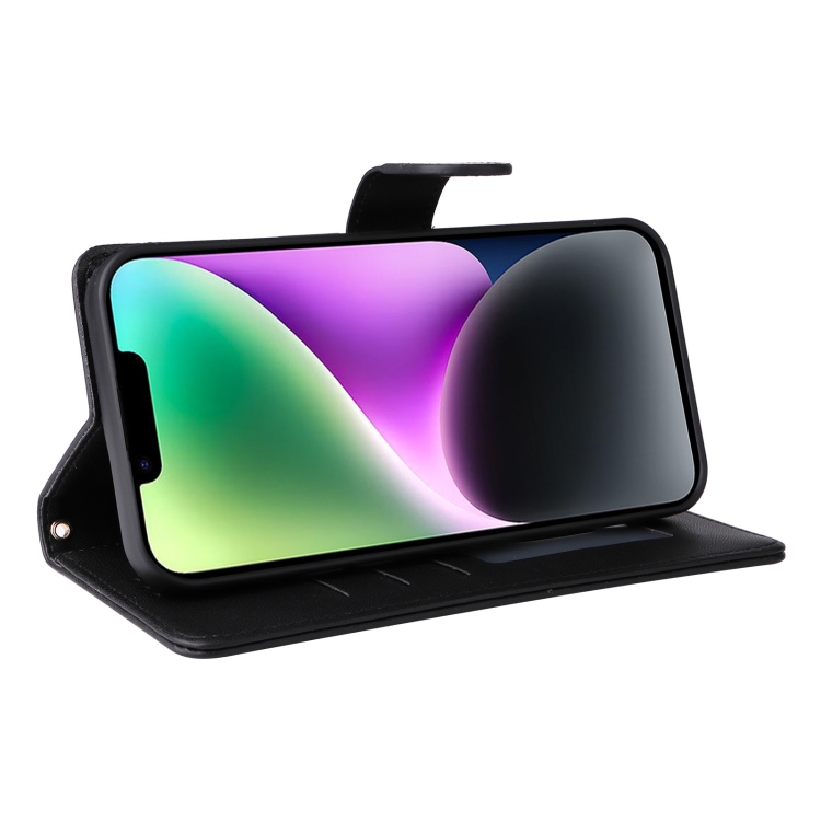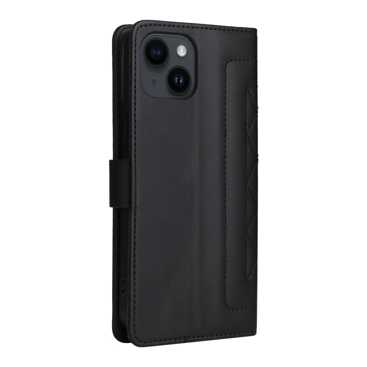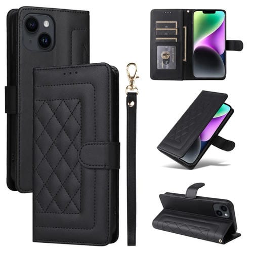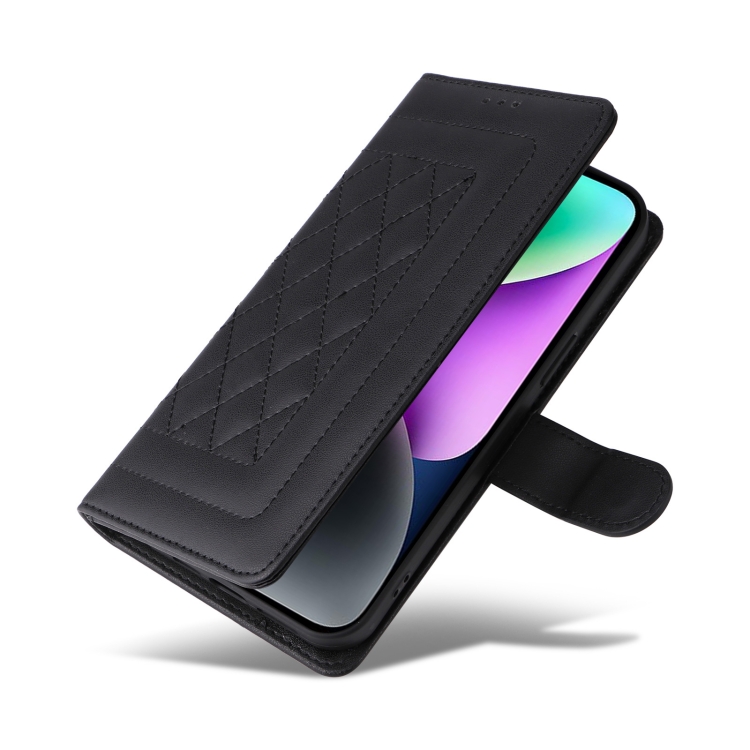 Funda de Teléfono para iPhone 14 con Tapa de Cuero Diamond Lattice (Negro)