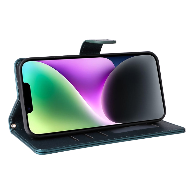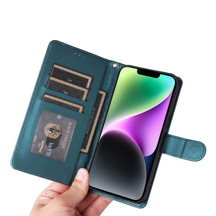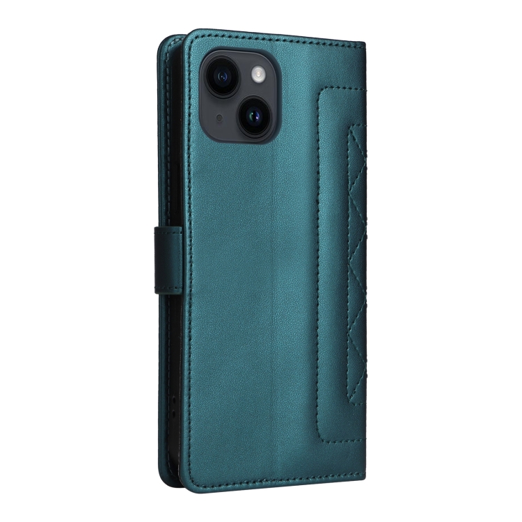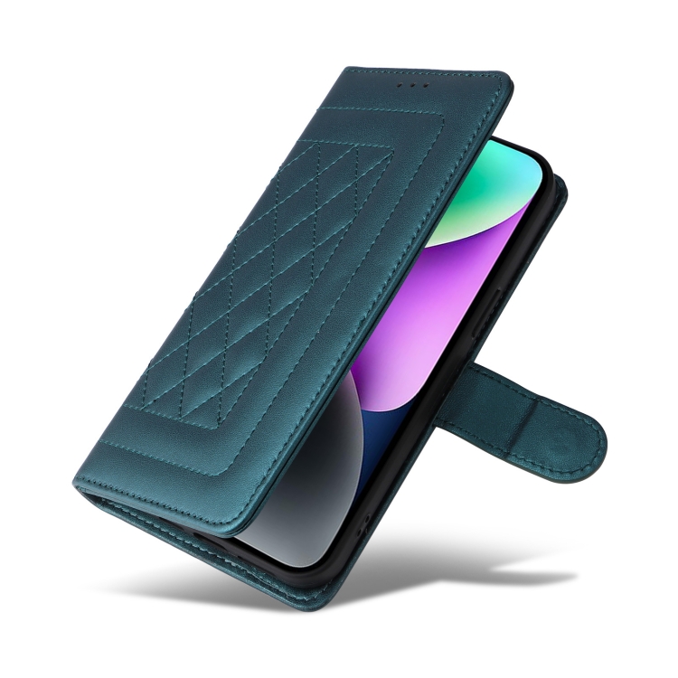 Funda de Teléfono para iPhone 14 con Tapa de Cuero Diamond Lattice (Verde)