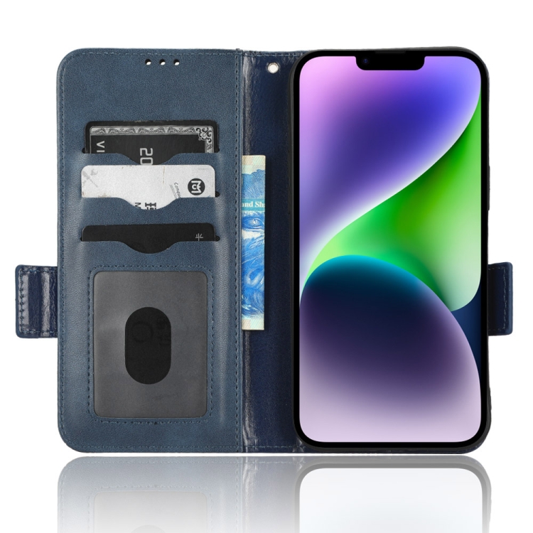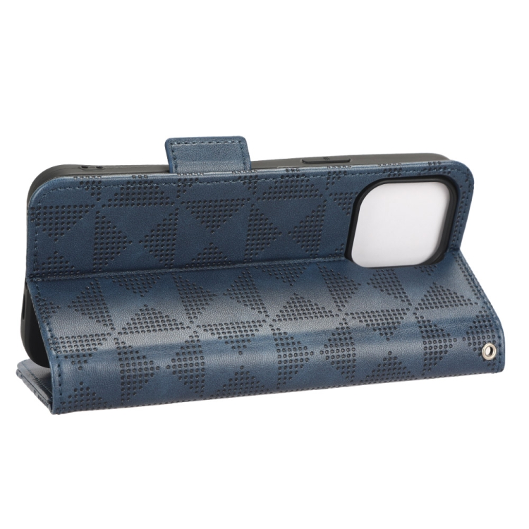 Funda de Teléfono iPhone 14 Cuero Triángulo Simétrico (Azul)