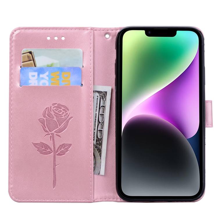 Funda de Teléfono iPhone 14 Cuero Pu con Tapa en Relieve (Oro Rosa)