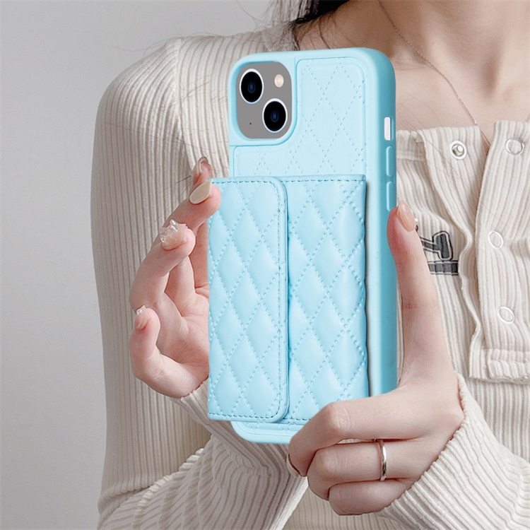 Funda de Teléfono Cuero Rómbico con Billetera Horizontal para iPhone 14 (Azul)