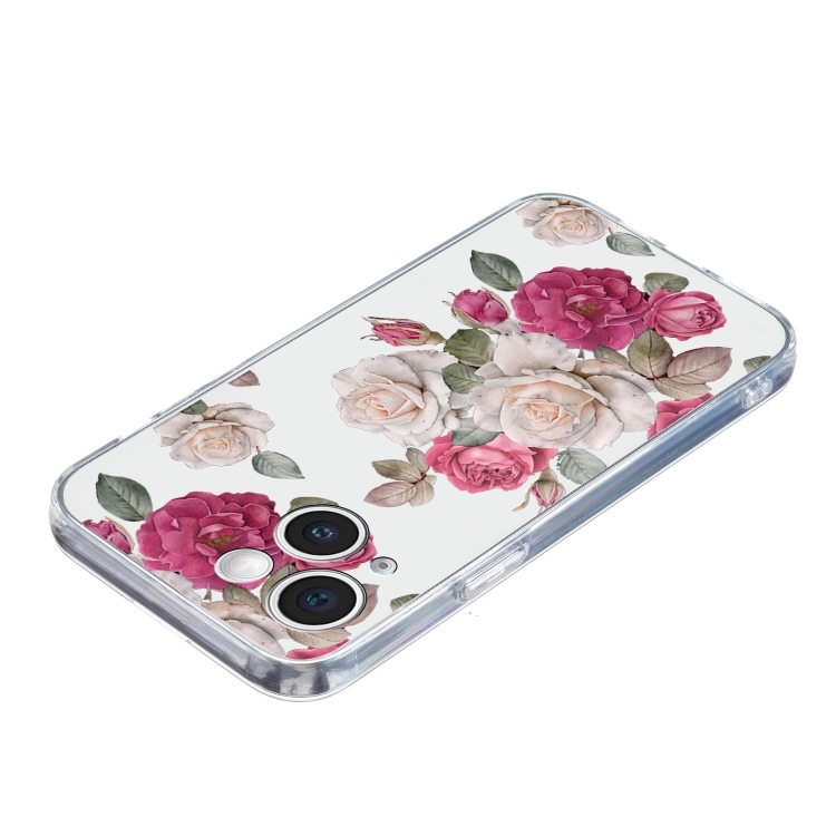 Funda de Teléfono TPU para iPhone 14 con Patrón de Dibujo de Colores (Peonía)