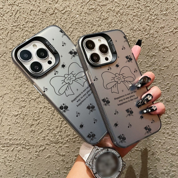 Funda híbrida para iPhone 14 TPU para PC pintura plateada (Lazo Floral Negro)