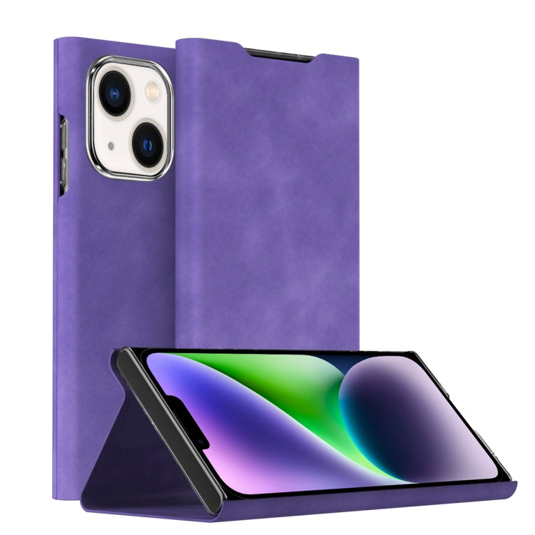 Funda Magnética de Cuero para iPhone 14 con Textura de Napa y Soporte (Púrpura)