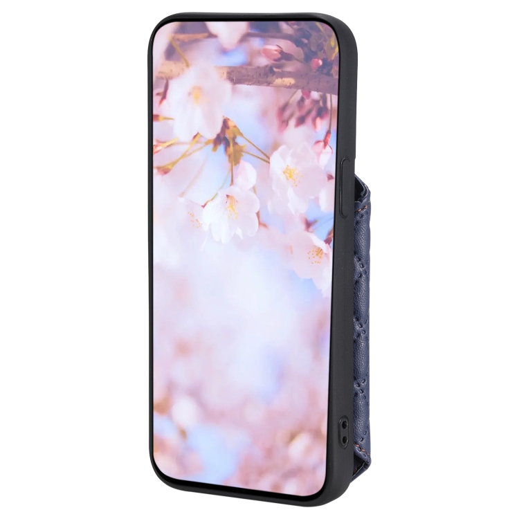 Funda para Teléfono iPhone 14 con Bolsa para Tarjetas Textura de Rejilla y Cordón (Azul)