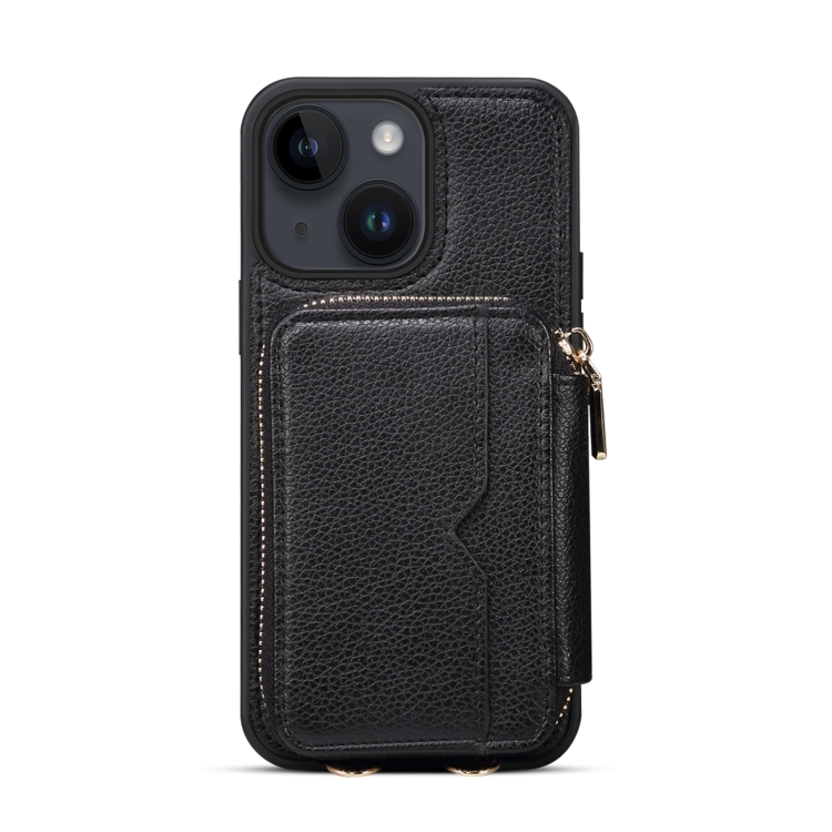 Funda para Teléfono iPhone 14 con Ranura para Tarjeta y Cremallera (Negro)
