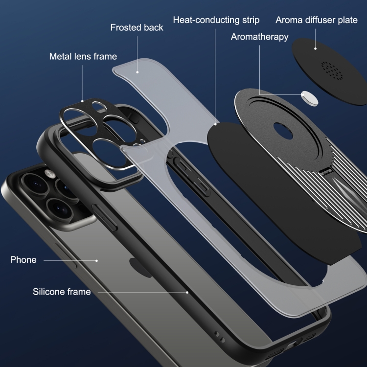Funda para Teléfono iPhone 14 con Soporte de Aromaterapia y Disipación de Calor (Negro)