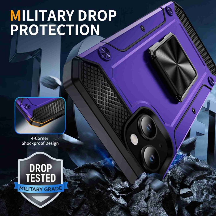 Funda para Teléfono iPhone 14 con Soporte de Metal a Prueba de Golpes (Púrpura)
