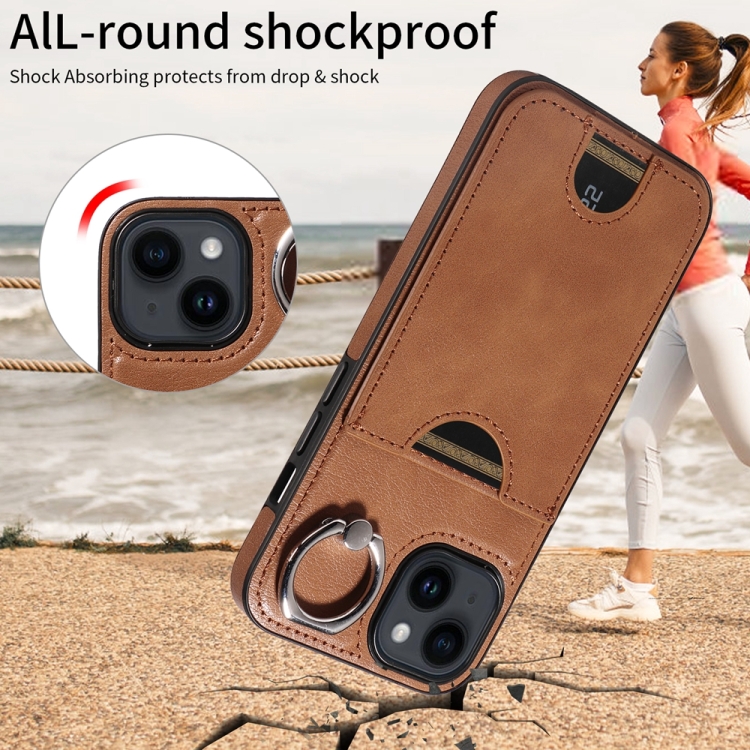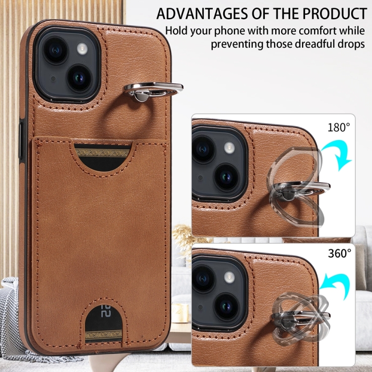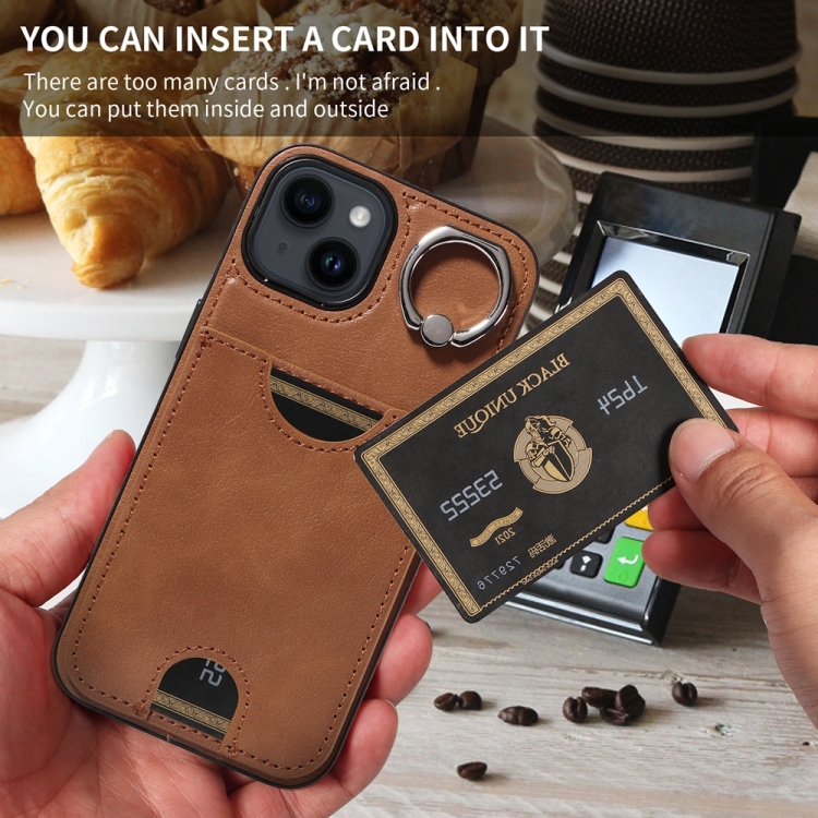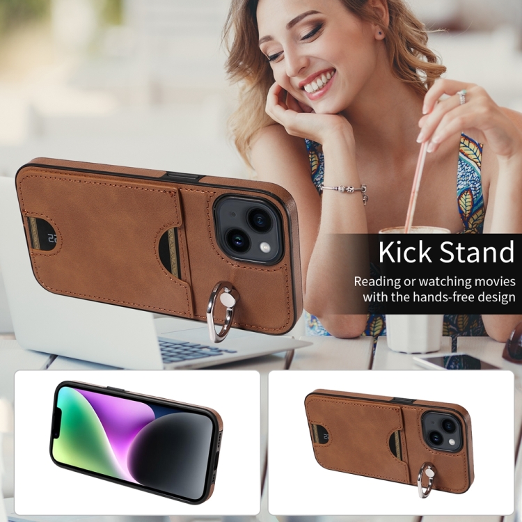 Funda para Teléfono iPhone 14 con Soporte para Anillo y Ranura para Tarjeta (Marrón)