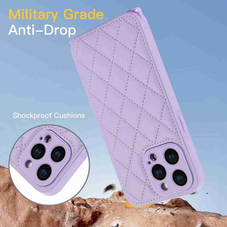 Funda para Teléfono iPhone 14 Textura Rómbica Cordón Doble (Púrpura)