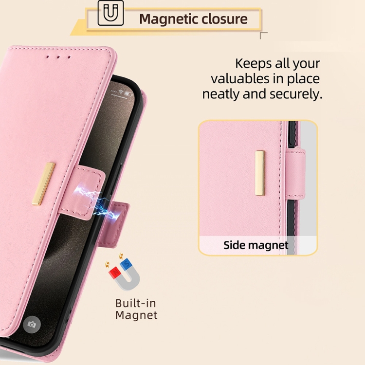 Funda para Teléfono iPhone 14 Cuero con Cadena Cruzada (Rosa)