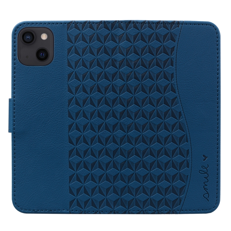 Funda para Teléfono iPhone 14 Cuero Hebilla de Diamante Empresarial con Cordón (Azul Real)