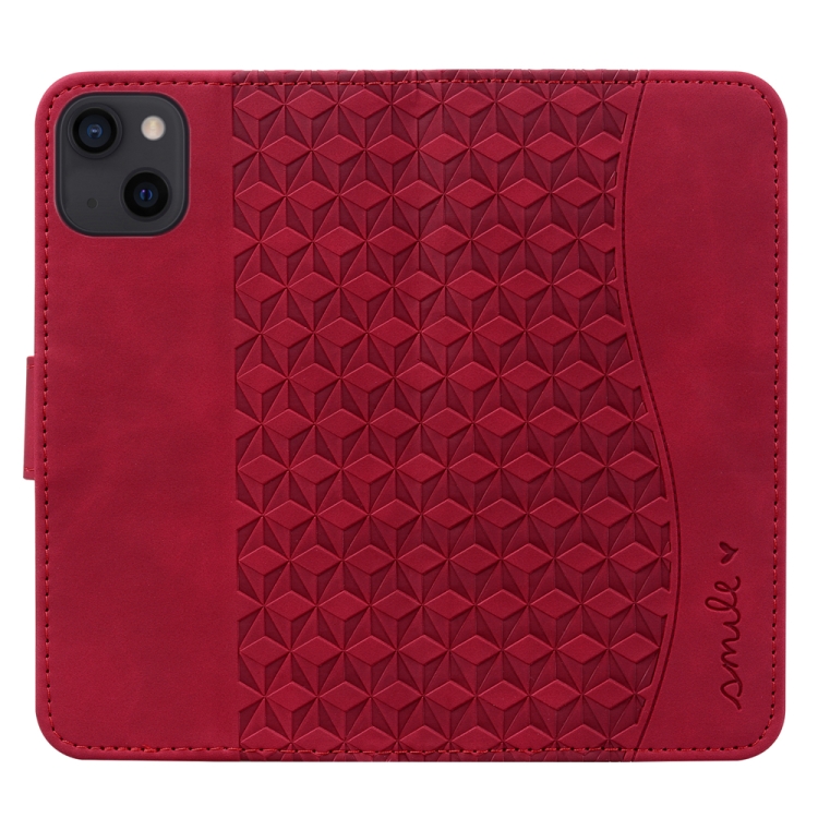 Funda para Teléfono iPhone 14 Cuero Hebilla de Diamante Empresarial y Cordón (Rojo Vino)