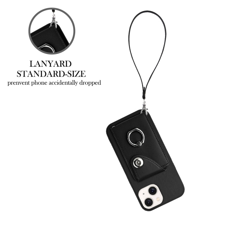 Funda para Teléfono iPhone 14 PU con Soporte para Anillo y Bolsa para Tarjeta con Cordón (Negro)